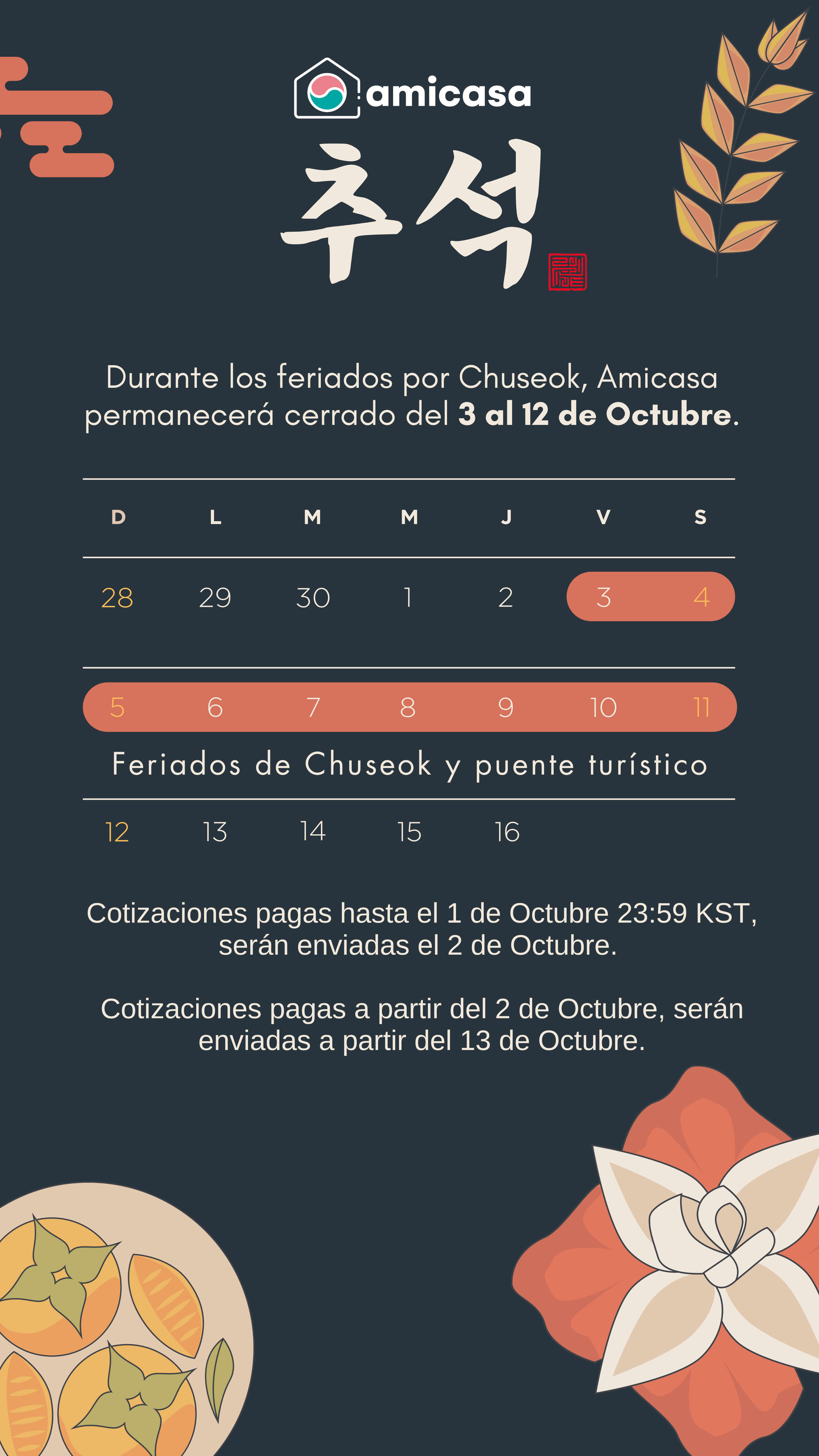 Amicasa permanecerá cerrado durante los feriados de Chuseok 2025.